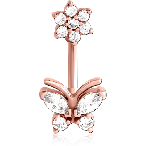 ROSE GOLD PVD COATED SURGICAL STEEL GRADE 316L INTERNALLY THREADED DOUBLE JEWELED NAVEL BANANA