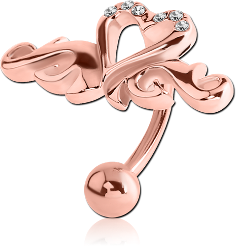 ROSE GOLD PLATED BASE METAL JEWELED NAVEL WING HEART BANANA
