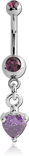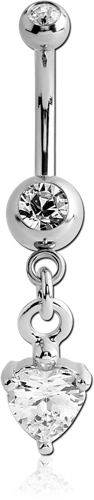 SURGICAL STEEL GRADE 316L DOUBLE JEWELED MINI NAVEL BANANA WITH HEART JEWEL CHARM
