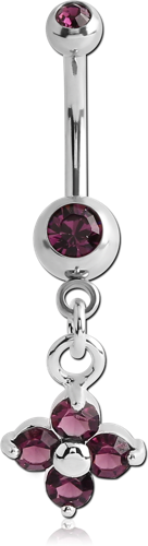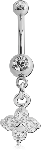 SURGICAL STEEL GRADE 316L DOUBLE JEWELED MINI NAVEL BANANA WITH JEWELED FLOWER CHARM