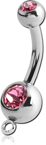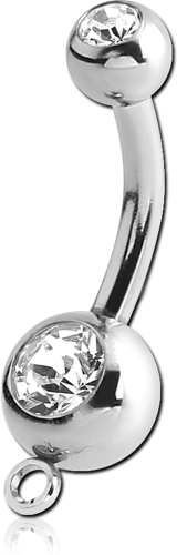 SURGICAL STEEL GRADE 316L DOUBLE PREMIUM CRYSTAL JEWELED MINI NAVEL BANANA WITH HOOP