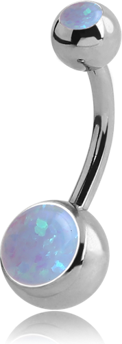 TITANIUM ALLOY DOUBLE JEWELED NAVEL BANANA WITH SYNTHETIC OPAL
