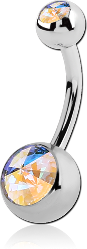 TITANIUM ALLOY DOUBLE JEWELED NAVEL BANANA WITH RIVOLI STONE