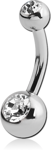 TITANIUM ALLOY INTERNALLY THREADED DOUBLE PREMIUM CRYSTAL JEWELED MINI NAVEL BANANA