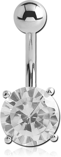 18 KARAT GOLD WHITE JEWELED NAVEL BANANA WITH JEWELED TOP BALL