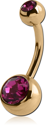 ZIRCON GOLD PVD COATED SURGICAL STEEL GRADE 316L DOUBLE JEWELED NAVEL BANANA