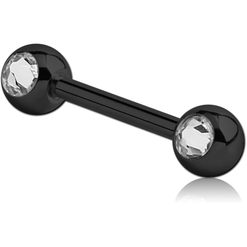 BLACK PVD COATED SURGICAL STEEL GRADE 316L SIDE MOUNTED DOUBLE PREMIUM CRYSTALS JEWELED BARBELL
