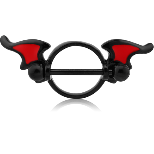 BLACK PVD COATED SURGICAL STEEL GRADE 316L ENAMEL NIPPLE SHIELD - BATWING