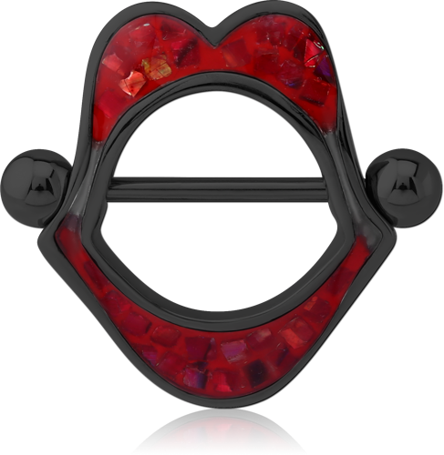 BLACK PVD COATED SURGICAL STEEL GRADE 316L ORGANIC SYNTHETIC MOTHER OF PEARL MOSAIC NIPPLE SHIELD- MOUTH