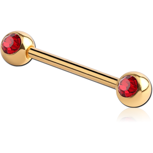 GOLD PVD COATED SURGICAL STEEL GRADE 316L DOUBLE SIDE PREMIUM CRYSTALS JEWELED BARBELL