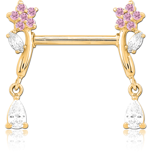 GOLD PVD COATED SURGICAL STEEL GRADE 316L NIPPLE PIERCING INTERNAL THREADED BAR WITH MOVING CHARM FINE JEWELED