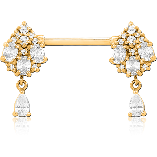GOLD PVD COATED SURGICAL STEEL GRADE 316L NIPPLE PIERCING INTERNAL THREADED BAR WITH MOVING CHARM FINE JEWELED