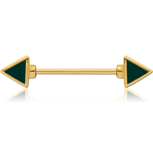 GOLD PVD COATED JEWELED SURGICAL STEEL GRADE 316L NIPPLE BAR WITH ENAMEL - TRIANGLES