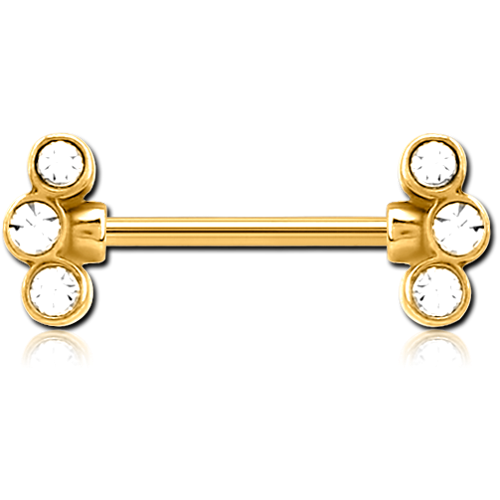 GOLD PVD COATDE SURGICAL STEEL GRADE 316L JEWELED NIPPLE BAR