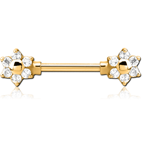 GOLD PVD COATED SURGICAL STEEL GRADE 316L JEWELED NIPPLE BAR - FLOWER