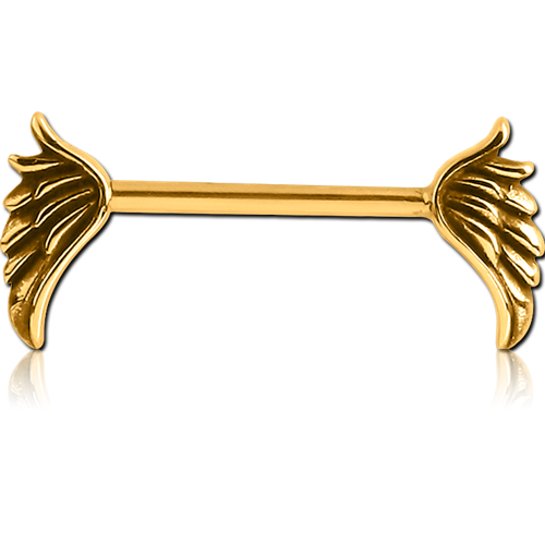 GOLD PVD COATED SURGICAL STEEL GRADE 316L NIPPLE BAR - WINGS