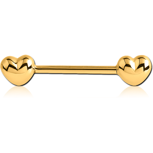 GOLD PVD COATED SURGICAL STEEL GRADE 316L NIPPLE BAR - HEARTS