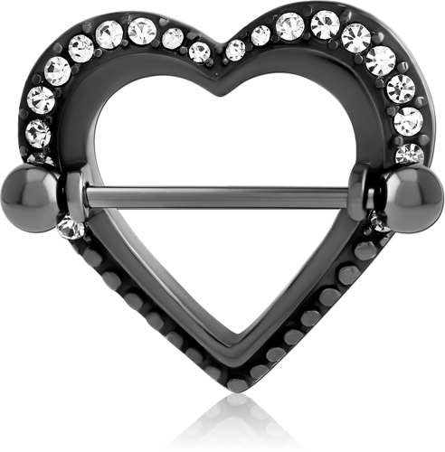 HEMETITE PVD COATED SURGICAL STEEL GRADE 316L JEWELED NIPPLE SHILED - HEART