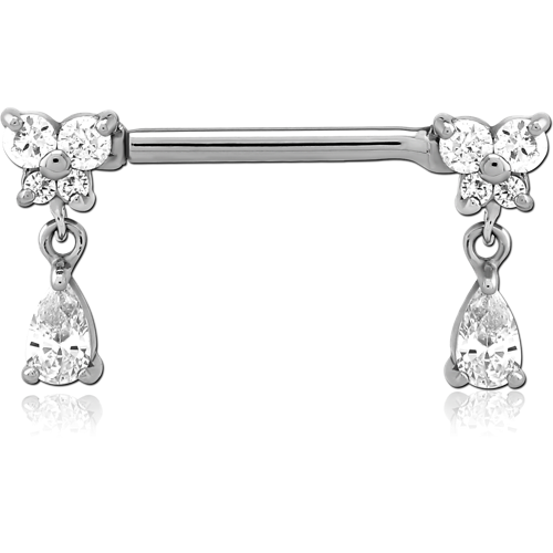 SURGICAL STEEL GRADE 316L NIPPLE PIERCING INTERNAL THREADED BAR WITH MOVING CHARM FINE JEWELED