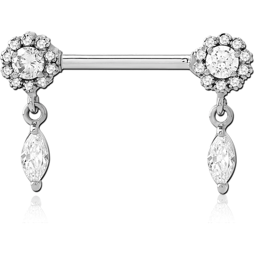 SURGICAL STEEL GRADE 316L NIPPLE PIERCING INTERNAL THREADED BAR WITH MOVING CHARM FINE JEWELED