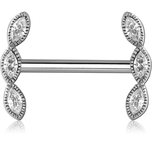 SURGICAL STEEL GRADE 316L NIPPLE PIERCING INTERNAL THREADED JEWELED BAR