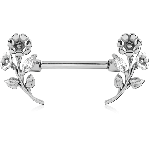 SURGICAL STEEL GRADE 316L JEWELED NIPPLE PIERCING INTERNAL THREADED BAR