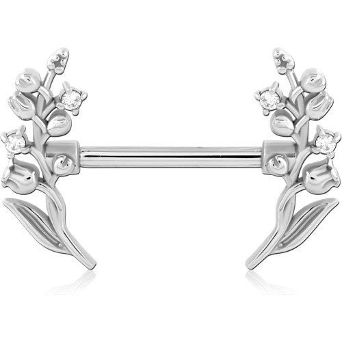 SURGICAL STEEL GRADE 316L JEWELED NIPPLE PIERCING INTERNAL THREADED BAR