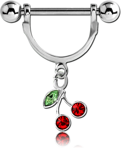 SURGICAL STEEL GRADE 316L NIPPLE STIRRUP WITH JEWELED CHERRIES CHARM
