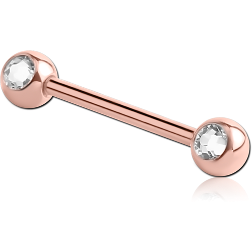 ROSE GOLD PVD COATED SURGICAL STEEL GRADE 316L DOUBLE SIDE PREMIUM CRYSTALS JEWELED BARBELL