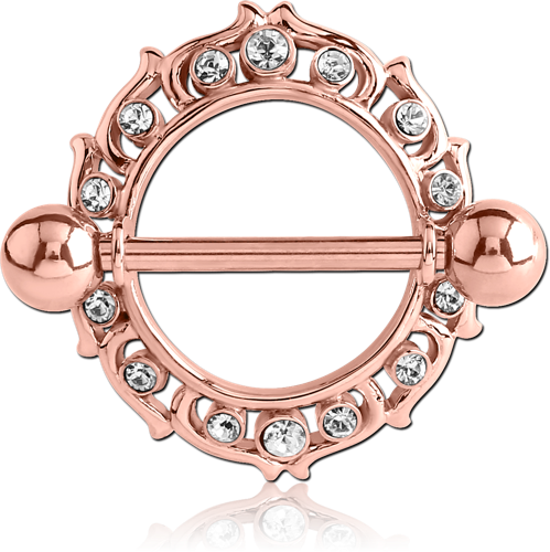 ROSE GOLD PVD COATED SURGICAL STEEL GRADE 316L JEWELED NIPPLE SHIELD