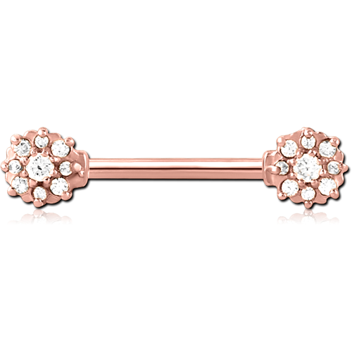 ROSE GOLD PVD COATDE SURGICAL STEEL GRADE 316L JEWELED NIPPLE BAR