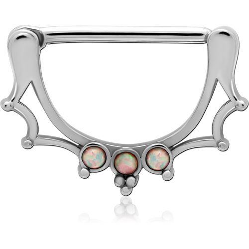 SURGICAL STEEL GRADE 316L PRONG SET SYNTHETIC OPAL NIPPLE CLICKER