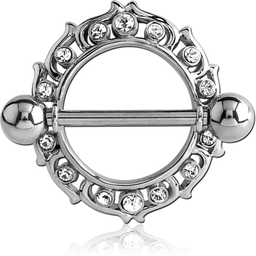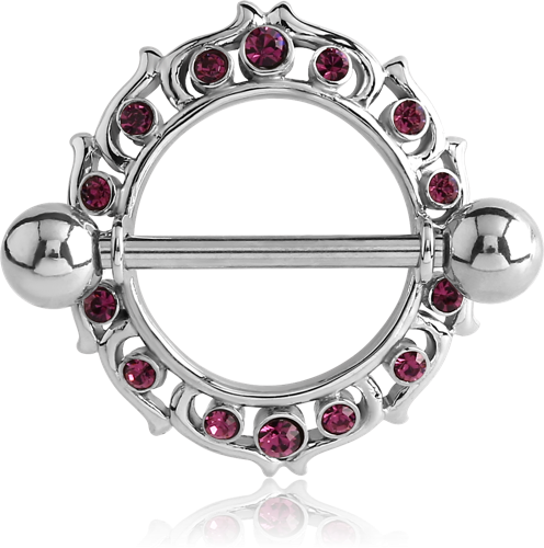 SURGICAL STEEL GRADE 316L JEWELED NIPPLE SHIELD - FLAMES