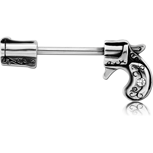 SURGICAL STEEL GRADE 316L JEWELED NIPPLE BAR - GUN
