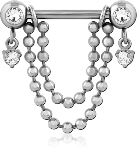 SURGICAL STEEL GRADE 316L JEWELED NIPPLE BAR WITH CHAIN