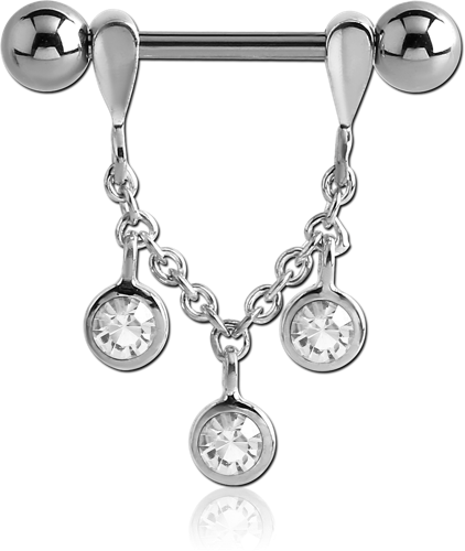STERLING 925 SILVER JEWELED CHAIN NIPPLE STIRRUP