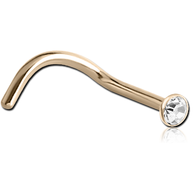 14 KARAT GOLD YELLOW 3MM BEZEL SET PREMIUM CRYSTAL JEWELED STRAIGHT NOSE STUD