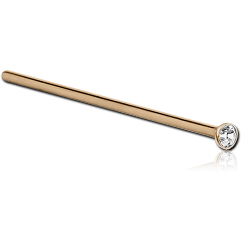 14 KARAT GOLD YELLOW 3MM BEZEL SET PREMIUM CRYSTAL JEWELED STRAIGHT NOSE STUD