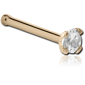 14 KARAT GOLD YELLOW 1.5 MM PRONG SET JEWELED NOSE BONE