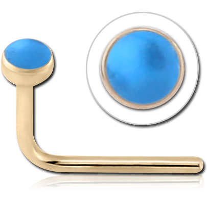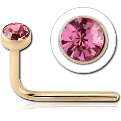 14 KARAT GOLD YELLOW 90 DEGREE BEZEL SET CZ NOSE STUD
