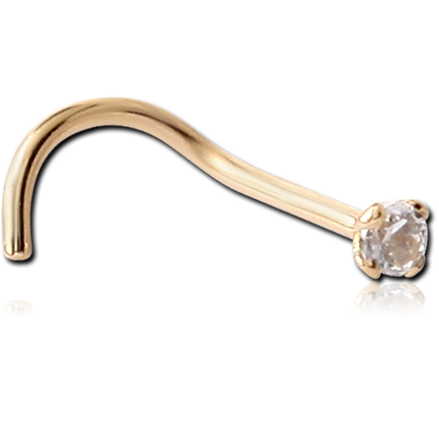 18 KARAT GOLD YELLOW CURVED NOSE STUD WITH 2MM PRONG SET DIAMOND