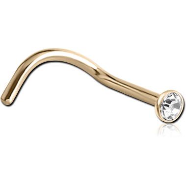 18 KARAT GOLD YELLOW BEZEL SET JEWELED CURVED NOSE STUD