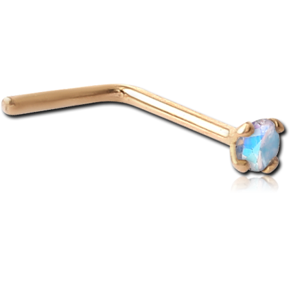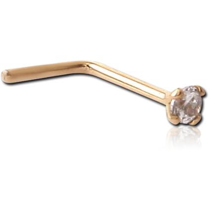 18 KARAT GOLD YELLOW 1.5MM PRONG SET JEWELED 90 DEGREE NOSE STUD 12MM