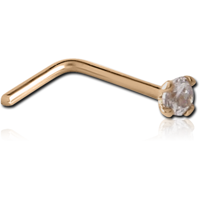 18 KARAT GOLD YELLOW 90 DEGREE NOSE STUD WITH 1.35MM PRONG SET DIAMOND