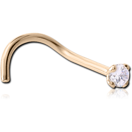 9 KARAT GOLD YELLOW CURVED PRONG SET CZ NOSE STUD