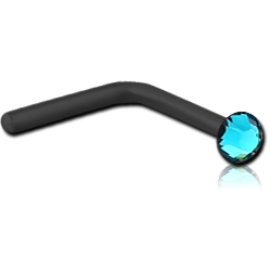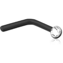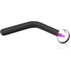 BLACK PVD COATED SURGICAL STEEL GRADE 316L 90 DEGREE FLAT PREMIUM CRYSTAL JEWELED NOSE STUD