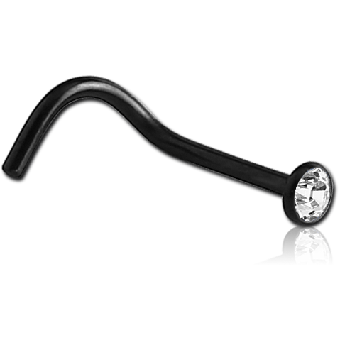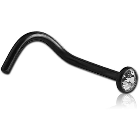 BLACK PVD COATED SURGICAL STEEL GRADE 316L VALUE CRYSTAL JEWELED CURVED NOSE STUD