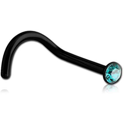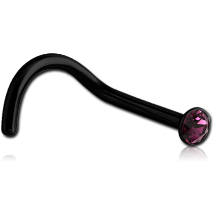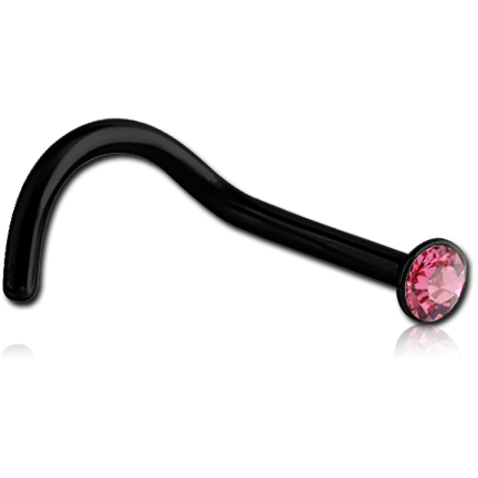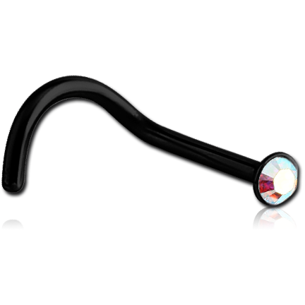 BLACK PVD COATED SURGICAL STEEL GRADE 316L VALUE CRYSTAL JEWELED NOSE STUD WITH GLUED STONE