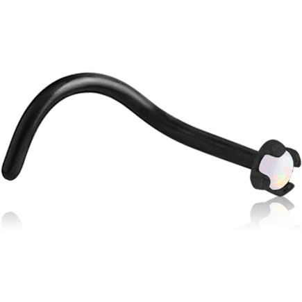 BLACK PVD COATED SURGICAL STEEL GRADE 316L CURVED PRONG SET 1.5MM JEWELED NOSE STUD WITH ORGANIC SYNTHETIC OPAL