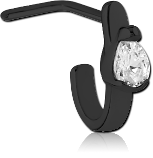 BLACK PVD COATED SURGICAL STEEL GRADE 316L 90 DEGREE JEWELED WRAP AROUND NOSE STUD